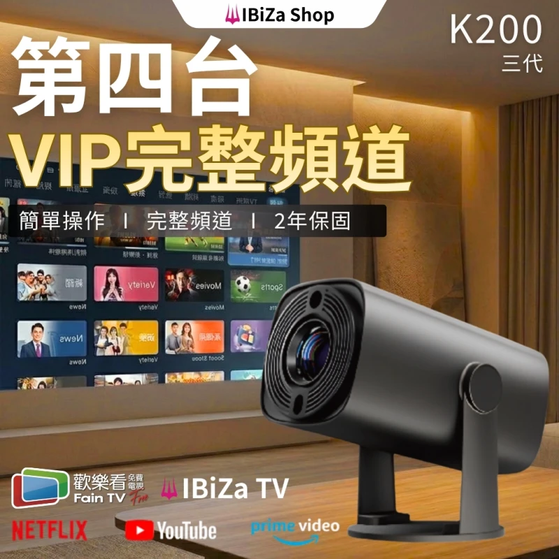 【第四台VIP】K200(三代)國民投影機|4K 解碼|內建第四台|小家庭/小空間/租屋族/小朋友看卡通|台灣 2 年保固